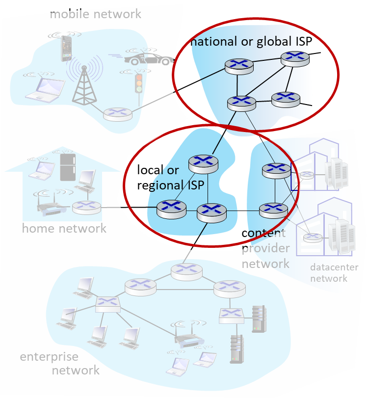 - 内容提供商网络(如 Google、Facebook):将其数据中心连接到互联网的专用网络,通常绕过一级、区域性互联网服务提供商