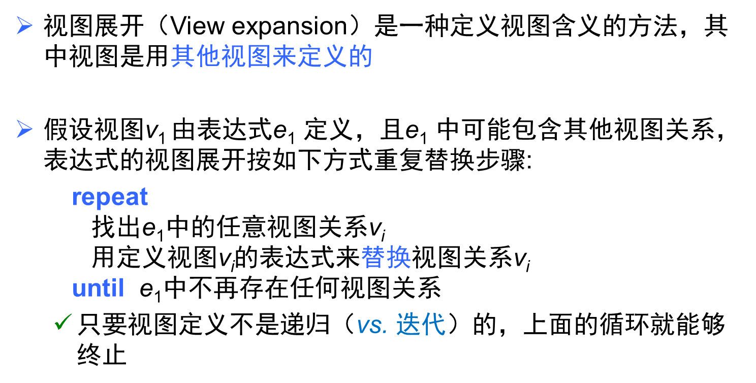 - 如果一个视图v依赖其自身,我们称该视图v是递归的