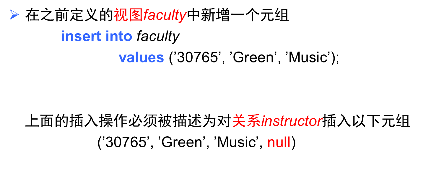 - 一般情况下,不允许对视图关系进行更新update(insert、delete)