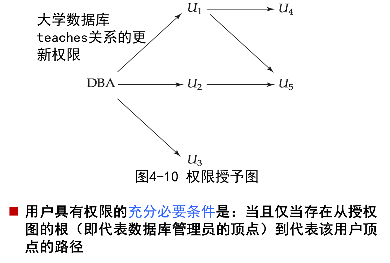 - 一个权限被回收后,基于这一权限的其他权限(如视图)也将被回收